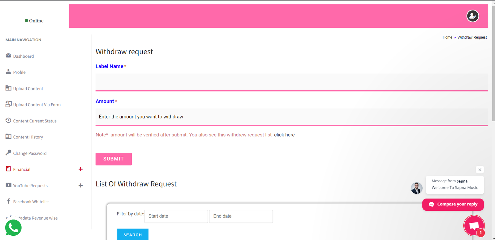 Sell Your Music Worldwide Get your music on Spotify, Apple Music, TikTok, YouTube, Tidal, Tencent and more. Keep 100% ownership of your music and stay in control of your career. Unlimited Releases starting Join Now No joining fee. No CC required. Our Partner's Our Services Unlimited Global Distribution Get your music heard by everyone and everywhere around the world.Your music will be played in more than 200 countries around the globe. 100+ Music Stores We can send your music to 100+ digital stores and streaming services. Your music will be everywhere where your fans are. Own Your Music Get 100% ownership of your creations. You are the author of your music, and you will be forever. Unlimited Releases Release as much music as you want on all the major platforms whenever you want with just a few clicks. Our Dashboard